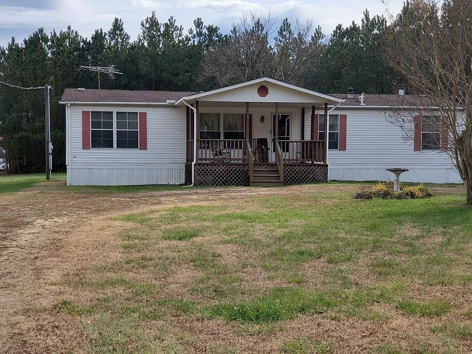 Peaceful and Private country setting best describes this home. Home situated on almost 2 acres of land. Master bedroom and bath on one side of home while two additional bedrooms on the opposite, perfect set up. Formal living room and dining room great for family and friends. Gas logs in den perfect to snuggle by on cool nights . Fantastic covered deck offers extended living. Covered carport and storage building. Don't miss this one! Priced to sell - motivated seller.