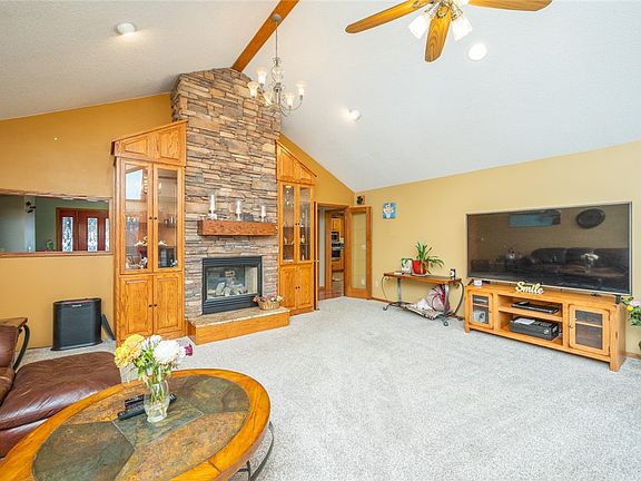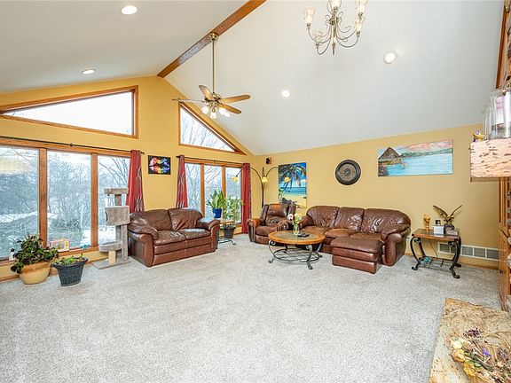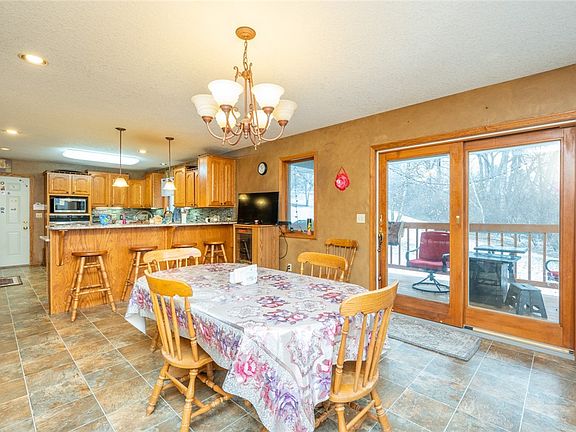 Country living just outside of town. This beautiful acreage has something to please everyone. From the spacious ranch home to the walkway taking you to your own private oasis. Enjoy quiet nights with friends around the fire ring after an afternoon playing in the above ground pool and hanging around the Tiki Hut or maybe you just want to sit on the dock of your own private pond. The sprawling land includes a creek, timber with deer and beautiful views. The home includes a main level office for those that work from home, the large kitchen is perfect for entertaining and the spacious family room gives you a beautiful view of the land on one side of the room and a beautiful see thru fireplace on the other side. The walkout lower level adds a family room, 2 BR's a bath and workout room. This property has an additional outbuilding that is set up as a dog kennel with a grooming room and offers potential opportunity! Adding to all of this are the near new solar panels to make this a very affordable home. This home is so versatile in what it offers you really need to check it out
