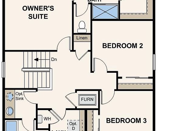 The upstairs features a lavish owner’s suite with a generous walk-in closet and a private bath with dual vanities and a walk-in shower. An additional bath and a versatile loft space complete this modern layout. Potential options include a covered patio, plus extra bedrooms in lieu of the loft and study.
