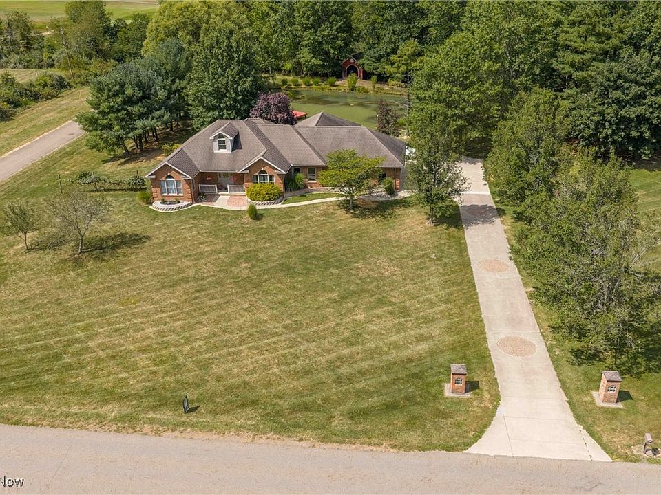 Quality built all brick ranch on 2.79+/- acres with scenic quarter acre pond. Open floor plan with 9' ceilings and raised panel wood doors throughout. Gas fireplace in the living room. Custom Meese cherry kitchen boasts tile backsplash, granite counters and breakfast bar. Brand new stainless steel kitchen appliances included. Maple hardwood floors in the formal dining room, main floor office and master suite. French doors lead to the sun room with access to the rear deck. Master suite overlooks the pond and includes walk in closet featuring built ins, full bath and French doors to the deck. Master bath features double sinks, jetted tub and new separate tile shower. Built in cabinets, ironing board and utility sink in the main floor laundry room. Covered 19 X 26 trex deck with lighting and ceiling fan. Anderson windows throughout. Attached 2 car garage. Impressive backyard with something for everyone...boasting .25 acre, 10' deep pond with dock, a white oak covered bridge, grape arbor, and playground with zipline. Quality built by Joe Martinelli, this home is a must see. Peaceful country setting yet located in New Philadelphia School District. Additional 1.5+/- acres available. See MLS#5153266.