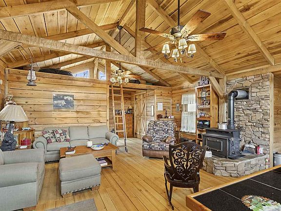 Welcome to this cozy cabin nestled away on 36 acres in Bean Station, TN. This property is less than five minutes from LAKE ACCESS!! You can see beautiful Cherokee Lake from certain parts of this property. This cabin is offering an open concept layout with 1 bedroom and 1 full bath with the option of building on if desired. The kitchen is equipped with custom cabinets and stunning black granite tile on island and counter-tops. Enjoy the wood burning stove in the living room and stay warm & cozy all winter long... (Gun safe does go with the sale of the home, it is built in with closet).. The 24X32 spacious garage would make great for vehicles, storage, or a workshop.... So many options!!! Come see this beautiful property today, but pack your bags.... you may not want to leave.
