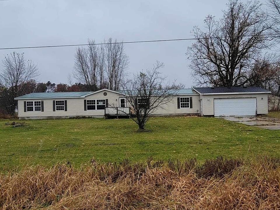 This may be the opportunity you have been waiting for: this sprawling manufactured ranch is 2000 sq ft with 4 possibly 5 bedrooms and 3 baths. The primary bedroom has its own private bath. Wait there is more; 3 acres a pole barn and a shed. If you're willing to try out your DIY talents and make it your own, this is a rare home at this price. HUD Case #262-161286. HUD insurable code UI - subject to appraisal. EHO. Seller may contribute up to3% for buyer's closing cost upon buyer's request. Virtual Tour: https://www.youtube.com/watch?v=RsqdJYvwTpE