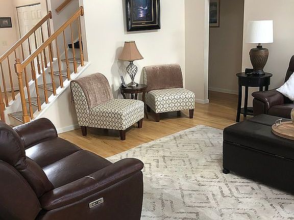 This house has it all, and provides a great area for entertaining inside and out. Stylish open and airy 2200 sq. ft. home, 3 BR, 2 ½ BTH home with a large first-floor master suite. There is a LR, Kitchen with large Breakfast area, spacious DR, Loft, Laundry Room and 2 car garage. The large foyer opens into a light and airy LR with skylights, a 14 ft. vaulted ceiling, and gas fireplace. The Kitchen, renovated in 2021, has popular shaker cabinets that reach up to the ceiling, new granite countertops accented with eye-catching marble and mirrored backsplash. All appliances are stainless steel ( refrigerator and dishwasher among new with the 2021 renovation). The kitchen has a large peninsula which connects the spacious breakfast Step right out of the breakfast area onto a large deck that overlooks the Warm and welcoming home featuring refinished HW floors throughout the foyer, DR, LR and Kitchen and new HW flooring in the first floor MB which was installed in 2017. The entire Kitchen was remodeled in 2021. There are new shaker style cabinets with the upper cabinets extending to the ceiling, and an addition of a breakfast coffee bar. Stylish backsplash complements the updated granite countertops and peninsula. Among the stainless steel appliances are a Refrigerator and dishwasher that were also replaced in the remodel. The Kitchen is opened to the breakfast room which has easy access to the deck for enjoying morning coffee. 2 story living room provides an open and spacious feel with both skylights and recessed lights. The HVAC was upgraded with a higher capacity/more efficient unit in 2023. The gas fireplace is a perfect focal point and creates a cozy feel. This home features a hard-to-find 1st floor master bedroom with a view to the built in pool outside. Master bathroom has double-sinks along with a tub and shower. Upstairs you will find a loft area that can serve as a family room or office, 2 large guest bedrooms and a full bathroom. The backyard is a summer retreat with the deck overlooking the heated in-ground pool. Enjoy summer evenings relaxing on the deck while experiencing the peace and quietness of the birds in the trees.