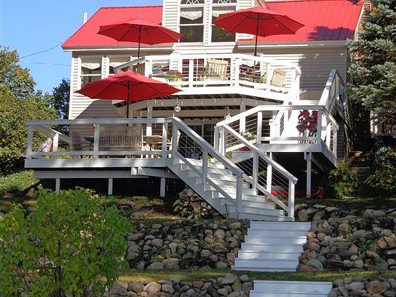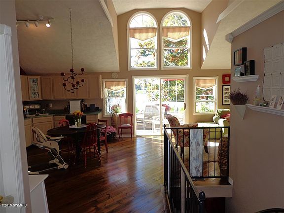 uper beautiful home with 55 feet on frontage on Algonquin Lake. A real dream! Open concept layout, lovely cathedral ceiling and large windows that let in a breathtaking panoramic view of the lake. Large deck overlooking the lake with stairs to the patio, terraced yard, another deck, and the boat dock. Algonquin lake is a private all-sports lake, all motorized vehicles are allowed. Good fishing lake - known locally for its bass, bluegill, walleye, has an active fish stocking program. Delightful summers await: on the 4th of July you have front row seating to one of the best fireworks displays in West Michigan, held on Snake Island - the little island directly in front of the house! 4th of July festivities include fun run around lake, pig roast, & decorative boat parade.