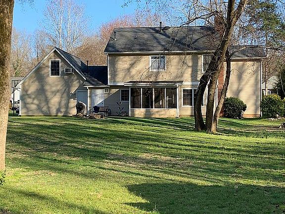 3/4 acre lot with park like setting. Wooded path leads to babbling creek and backs up to golf course. 4 bedrooms and 2.5 baths. Easy 485 access and low HOA dues. Community pool and tennis courts 2 living areas, screened porch, patio and bonus room over 2 car garage. Gas fireplace, gas heat and gas water heater, solid surface countertops, security system. Check it out! Pre-qualified buyers only please.