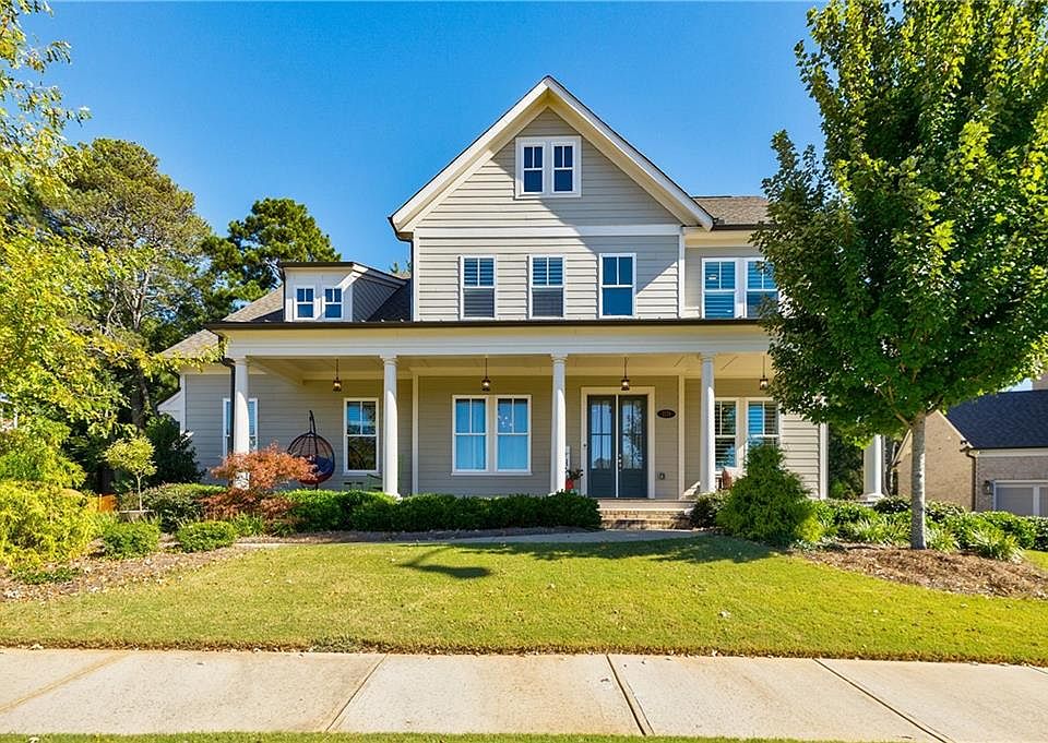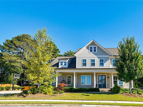 Situated in East Cobbs Pope HS district, this beautiful home offers a bright, open layout, a large amount of modern living space, and a welcoming front porch. Entertaining is easy in the expansive eat-in kitchen w/ vaulted ceiling, fireplace, walk-in pantry, and large island, as well as the dining room and butlers pantry w/ custom shelving. The kitchen is open to the family room w/ extra cabinets, a second fireplace, and custom built-ins. Luxurious master on main has large master bathroom suite w/ walk-in closet and custom shelving. There's more custom shelving and laundry room with sink in the entry area off the 3 car garage. Upper level offers 3 large bedrooms with custom closets, two bathrooms, and a spacious loft space that can be used as a playroom or media room. Finished daylight terrace level is massive, with a large bedroom, full bathroom, media room, kitchenette w/sink and fridge, barn doors, and two huge living areas, plus extra unfinished space for storage. Enjoy the private backyard and fenced garden area from the deck off the main level or the terrace level covered porch. Video tour available.
