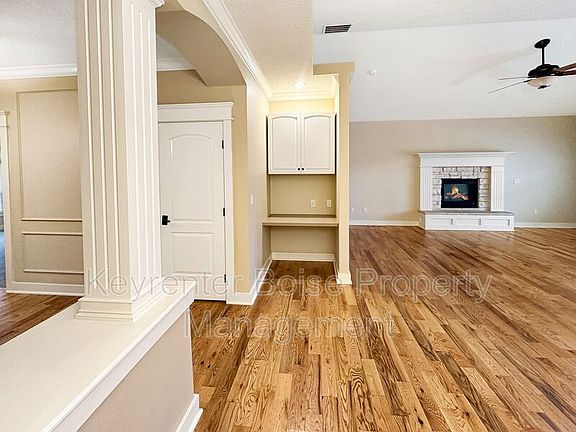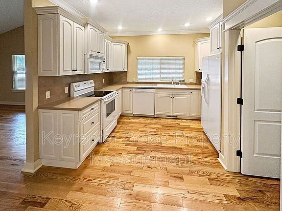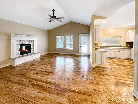 This beautiful, recently painted house is move-in ready and waiting for you to come home! With three bedrooms, two bathrooms, and 1,544 sqft, this property offers plenty of space for all your lifestyle needs. Gorgeous hardwood flooring flow throughout the entire property, except in the bedrooms, which have plush carpeting for extra coziness, and the chicly-tiled bathrooms. The kitchen features hardwood cabinets and a generously sized walk-in pantry, and it flows into the open-plan dining/living room, featuring a gas fireplace and high vaulted ceilings. The main suite boasts a private ensuite with an oversized bathtub, a spacious shower, and dual vanities. Other features of this incredible property include central heat and air conditioning for year-round comfort and an attached two-car garage. Ideally located, you'll be close to mountain bike trails, and walking trails, so you can enjoy the fresh air and the stunning views of the surroundings. You'll also be within walking distance of Eagle Sports Complex and Bike Park. *The Basics: Lease Term: 8-16 month lease preferred Utilities Included with Rent: NONE, Tenant responsible for all utilities Pets Policy: Pet considered with additional screening required; $50 monthly pet rent, $250 one-time pet fee, and $250 additional security deposit per pet. All pets & animals MUST be registered and approved during the application process. *IMPORTANT THINGS YOU SHOULD KNOW: This is a No Smoking rental property Application processing time is 2-3 business days. Please review Keyrenter's Application Criteria prior to applying. $45 Application Fee per applicant 18 or older. No sublease/Airbnb etc. Other restrictions may apply per lease contract. Security Deposit: Equal to one month rent All Keyrenter Boise residents are enrolled in the Resident Benefits Package (RBP) for $40.95/month which includes renters insurance, HVAC air filter delivery (for applicable properties), credit building to help boost your credit score with timely rent payments, $1M Identity Protection, move-in concierge service making utility connection and home service setup a breeze during your move-in, our best-in-class resident rewards program, home buying assistance, and much more! More details upon application. Other terms and conditions may apply. All information including advertised rent and other charges are deemed reliable but not guaranteed and are subject to change. Amenities: attached 2-car garage, new paint, high vaulted ceilings, dual vanities, tile floors, central heat & air conditioning, gas fireplace, walk-in pantry, pet friendly, covered patio, hardwood flooring, oversized bathtub, washer/dryer hookups, bathroom tile, walking trails, master bedroom ensuite, spacious shower, mountain bike trails, walking distance to eagle sports complex and bike park, 1 pet only, hardwood kitchen cabinets