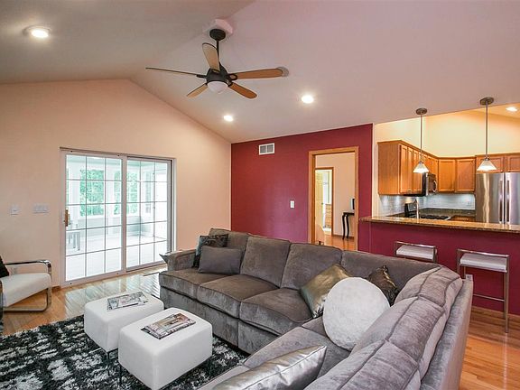 Natural light in large open floor plan on wooded lot. Features main-level master suite w/ vaulted ceilings, cathedral ceilings in Great Room & dining, main-level study w/ built-in bookshelf, tile & hardwood throughout main level w/ hardwood stairs & flrs in LL, family room features built-in media console, 10' ceilings & wet bar. Two bath renovations feature Kohler fixtures, tiled shower, granite surround tub/shower. Outdoors: 3-season porch, walkout patio, upper deck & 34' x 26' LL deck. Attached 3-D tour.