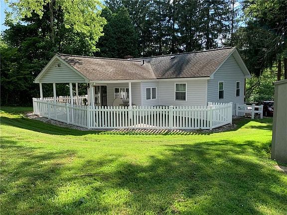 RANCH HOME WITH COVERED OUTSIDE AREAS IN FRONT AND REAR SURROUNDED BY HALF ACRE OF PROPERTY. BEAUTIFUL GLASS PANEL FRONT DOOR WITH SIDELIGHTS AND NEWER ANDERSON STORM DOOR. GLEAMING HARDWOOD FLOORS THROUGHOUT. SPACIOUS EAT-IN KITCHEN WITH CUSTOM DEEP DRAWERS FOR DISHES AND MORE. UNDER CABINET LIGHTING ILLUMINATING THE L SHAPED COUNTER, CERAMIC FLOORS WITH SLIDING GLASS DOOR LEADING TO THE FENCED IN 28X14 BACK PATIO, WITH SUN AND SHADE FOR ALL TO ENJOY. AMPLE PARKING AND SHED FOR LAWN EQUIPMENT.