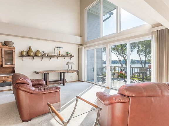 Fabulous location for this Waterfront Condo on Stroebe Island. Enter the 2 story foyer & immediately take in endless water views. Open concept design. Great Rm w/ volume ceiling, gas FP & wall of windows open to the formal dining rm w/patio doors to private deck. Kitchen w/granite counters & walk in pantry. First floor laundry rm. Master Suite is located on second level along with a loft that overlooks the lake. Finished Lower level is home to a beautiful family rm w/2nd FP, Bedroom 2, full bath. Total walk out lower level. Attached 2 Car Garage. Per seller includes use of 1 boat slip.