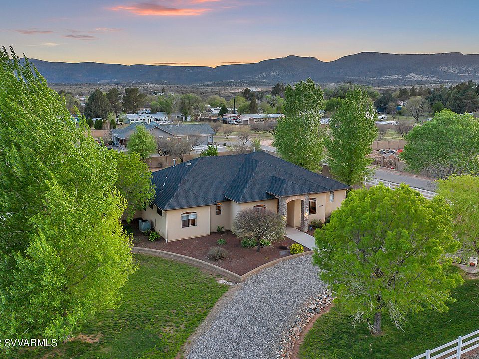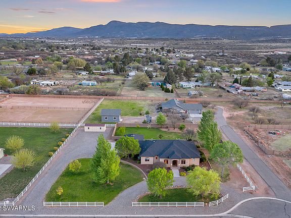 Welcome to the good life, all the perks of an irrigated country home with the amenities of the city. That's right, this 1 acre irrigated property has natural gas and city water. Built in 2007 this impressive 2,588 SF, 3 bedroom, 3 bathroom home has duel offices, one of which could be an easy transition to a 4th bedroom. Beautiful landscaping includes, lawns, mature trees, a 360 SF covered patio with extended pavers and fire pit. The back yard is surrounded by a block wall for privacy. The 942 SF 3 car garage has built in storage. The property also includes a large storage shed. Plenty of room to add a garden and plant fruit trees, or just enjoy the well thought out landscaping as it is. $300 per year HOA covers irrigation water, community park, and Verde River access. Easy assess to I-17