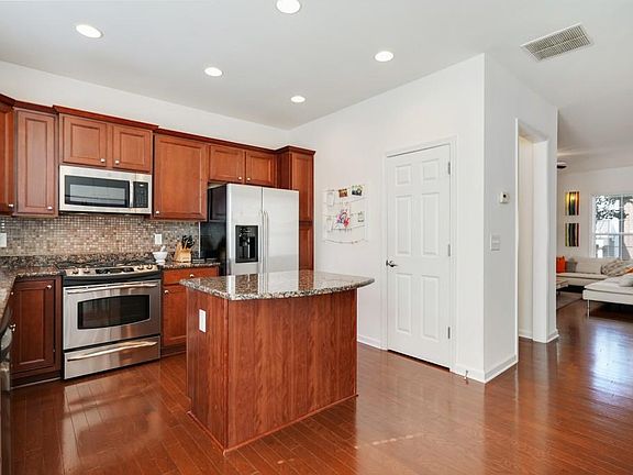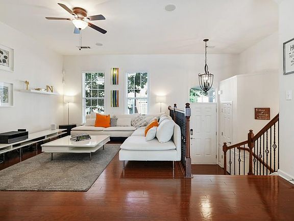 Move in ready townhome with 3 bedrooms up plus additional guest suite or flex space on ground level. Great townhome location inside the community offering a private deck view and great outdoor dining space with turf overlay. Bright and open main level layout with the spacious kitchen and dining areas in the back of the townhome and accessible to the deck for easy entertaining. The large living room is in the front of the townhome and offers a gas fireplace and ample space for furniture set up. The kitchen offers lots of cabinet space, separate pantry, prep island and stainless steel appliances. Master suite up with walk-in closet + 2 add'l bedrooms up share a hall bath. Ground level bed suite makes a great exercise room or home office. Awesome gated community with pool, dog park and other peaceful green space areas is walking distance to Dresden's Village Place shops and restaurants!
