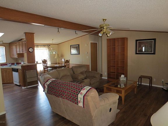Very clean doublewide home that shows pride of ownership, 3 bedroom, 2 bath, completely furnished, just bring your toothbrush Full length covered front deck to enjoy the cool mountains. Back deck partially covered and partly open. Large shed with power in backyard. Laminate flooring throughout except carpeted bedrooms. Newer metal roof. Pictures and spinning wheel do not convey.
