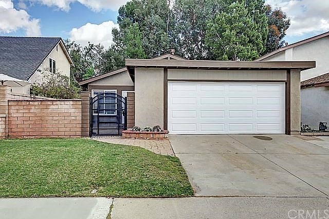 This upgraded and meticulously maintained single-story residence is ready for its new owners. Laminate wood flooring, vaulted ceilings, thick baseboards, light-catching windows, a cozy fireplace, and a tasteful neutral paint schema in the living area complements the gourmet kitchen with solid surface counters, upgraded cabinets, four-burner gas range, and built-in microwave. The dining area, with direct backyard access, seamlessly connects with the living room and kitchen. Enjoy the serenity of the sizable master suite with slider leading to the backyard, a generous closet, vaulted ceilings with fan, custom vanity, and separate shower enclosure. The comfortable secondary bedrooms have spacious closets, plush carpet, and are adjacent to a full bathroom with pedestal sink, laminate wood flooring, and a shower/bathtub combo. The massive backyard with cement patio, awning, and mature trees is perfect for year-round recreation. Two car attached garage and Mission Viejo lake access.