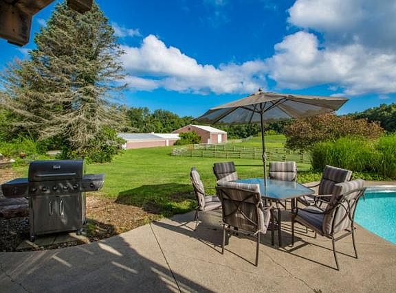 Rolling hills will greet you when you pull up to this 10 acre horse property in Centre Township! This ranch home has a finished walk out basement and an inground pool (19 x 43)! The Horse stable, which is 32x116 has 13+ stalls and an indoor riding arena that is 60x64! Some stalls are 11x11 and some are 11x16. The horse barn features a tack room, exhaust fan, concrete floors, wash area with drain, and is heated with radiant gas heat. Several of the board fenced paddocks are plumbed with water. This ranch home has great views of the property! Living room is open to the dining room with open stair case leading to the basement! Vaulted ceilings on the main level! There is a fireplace in the finished basement ! Although the house does need some updating it has the potential! The finished walk out basement has two additional family rooms and a den plus another bedroom, full bath and laundry area! Attached two car garage! Minutes to shopping on Ireland Road and not far from Potato Creek State Park. This truly is a unique 10+/- acre property!