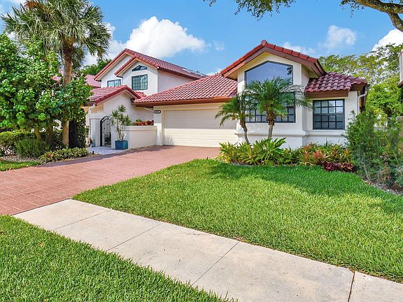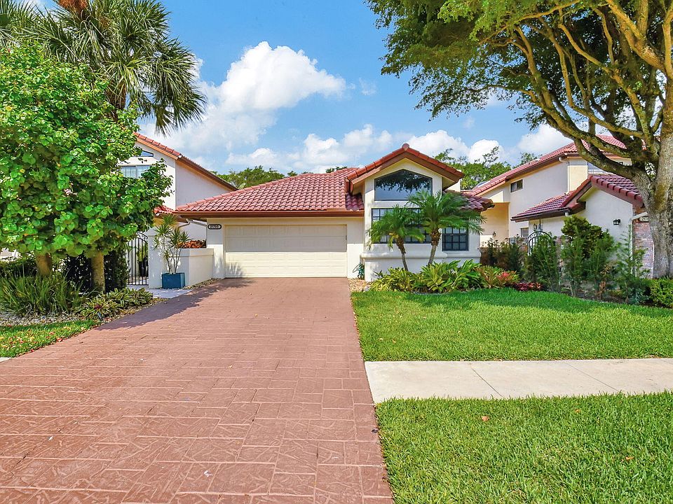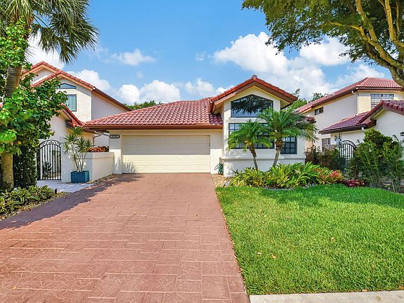 Located in Town Place Club Villas in the heart of Boca Raton, this gorgeous 3 bedroom 2 bath one story home is an opportunity you won't want to miss! The open floor plan with vaulted ceilings and porcelain tile floors throughout provides a seamless flow between living spaces, creating an inviting ambiance. An abundance of natural light shines on the kitchen & dining area through large skylights that showcase beautiful cabinetry, plenty of counter space, snack bar seating and eat in breakfast area. Retreat to the master suite, complete with plenty of closet space, modern smoked glass doors and large bathroom with free-standing soaking tub. 2 spacious guest bedrooms share a full bath offering a sanctuary for relaxation for your family & guests. The private terrace extends the living space outdoors, with a heated splash pool/spa and plentiful outdoor seating for an inviting indoor-outdoor lifestyle.
