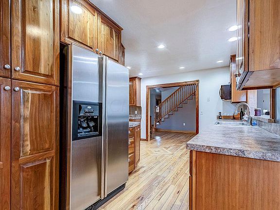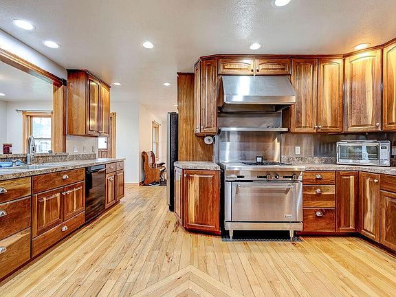 WOW!! What a home! This four-bedroom, four-bath sanctity boasts over 5,100 sq. ft. of living space with several different species of hardwoodfloors throughout its entirety. Complimenting the exceptionally large, first-floor living area, is a family dining room with split fireplaces, a frontsitting room, two bedrooms, and two full bathrooms. The black walnut, cabinet-filled kitchen showcases a restaurant-grade stove and lots ofcounter space. The unbelievably spacious master bedroom with a large master bath awaits your seclusion and privacy. Three other generousbedrooms will give your family and guests plenty of room for relaxation and sleepovers. This enviable retreat features three heating sources: agas furnace, heat pump, and an outdoor wood burner that has kept the gas bill under $50/mo