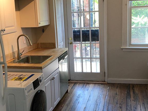 Two bedroom apartment on the second floor of a Capitol Hill rowhouse, lots of windows and light, antique hardwood floors, high ceilings; The bedrooms are in the front of the unit, sitting are in the middle, with the kitchen and bath in the rear. Clean, bright kitchen, with dishwasher and in-unit laundry. A large deck off the back has plenty of space for sitting or a bbq. The unit has a separate, private front and rear entrance. Owner pays water, tenant responsible for gas and electric, one month deposit and first month rent due at time of signing
