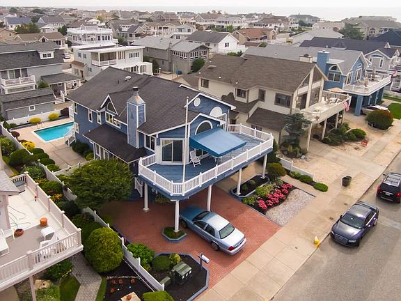 South end Stone Harbor Beautifully constructed single family home. Nestled on one of Stone Harbors finest streets and steps to the great beaches. This beautiful upside-down style single family home offers 4 bedrooms 4 full baths. Top of the line construction with great Ocean and bay views. Large living area, dining area with cathedral ceilings. A first floor family room that opens to the rear yard with a large swimming pool. An attached garage, 2 fireplaces, beautifully landscaped and a large storage shed are just a few of the extras! Offered mostly finished. 60 x110 . Shown by appointment only.