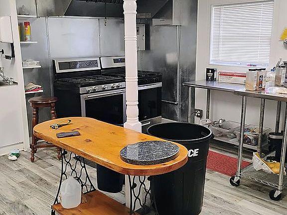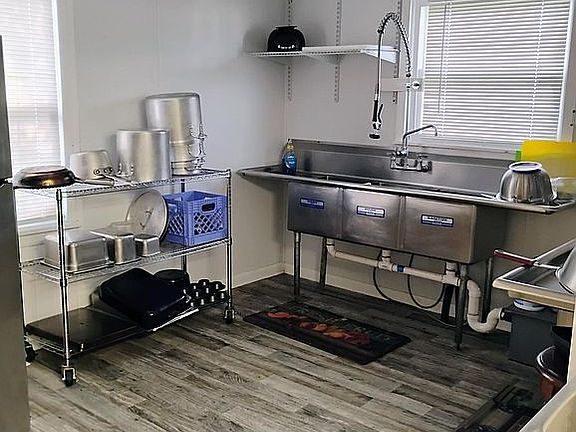 Turn-Key Professional Kitchen & Two (2) Bedroom House w/ Loft. All County Health & Fire Marshal permits up-to-date. Year built: 1940 1,350 sq. ft. (800 house & 550 kitchen) Located on 7,000 sq. ft. commercial lot. 2 Bedrooms. 275 sq. ft. loft One full bathroom with full-size bathtub/shower. Hardwood floors. Central air and gas heat. Electric water heater. New water supply and drain plumbing. Plumbing ready for clothes washer. 220-volt outlet ready for clothes dryer. Top and bottom crawlspaces insulated. Attic fan Wheelchair ramp 12 x 24 unfinished garage with loft. Garage has electrical service from the house. There is no water or sewer for garage. However, water and sewer service are available very close to the garage.