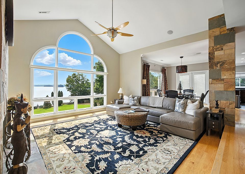 Breath taking views of lake Keowee, 3 car attached garage with an additional boat house on the property.New roof and new Trane AC units, new dock with double boat slips. Beautifully landscaped With private white sand beach.Boat dock with lift and 2 JetSki ports.Community pool with club house.New treks deck with dry below ceiling, out door kitchen with 2 outdoor gas fireplaces and 2 indoor gas fireplaces.Stamped concrete driveway and path to Dock. Sprinkler system, ETC.