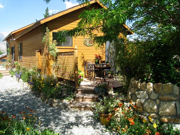 800 sq foot cottage, pristine condition, beautiful kitchen cabinetry, pantry, tile counters kitchen and bathroom, tile floors kitchen and living room. Carpeted large bedroom with patio. Large picture windows with stunning views of the Sierras. Large bathroom with tub and shower, washer and dryer. Very quiet scenic neighborhood. Surrounded by National Forest and hiking trails in the Buttermilks, out your door. Immaculate condition, unique and beautiful retreat space. No smoking, no pets, single occupancy. No toxic materials used in the custom building of this cottage. Environment is tranquil and beautiful. 5 minutes to town. Stars shine bright in our peaceful community without noise or light pollution. Owner also lives on property. Private storage shed space for you. $1325 plus gas and electric ( under owners contracts ) Water, Garbage and Recycle included. One year then month to month.