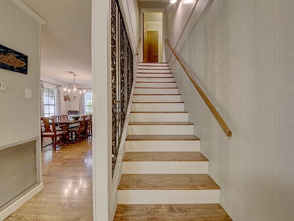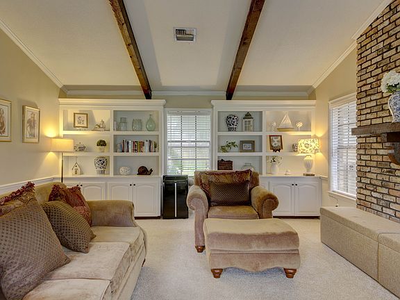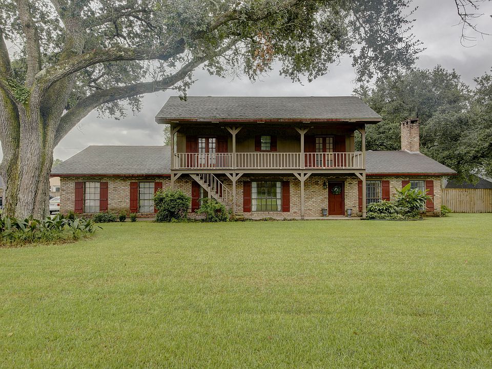 Super Location! Not in a flood zone. This home is situated on .542 of an acre and it's minutes from everything. Three large bedrooms, three full baths and one half bath. The living room is warm & inviting with brick wood burning fireplace, cathedral ceilings & built-in bookshelves. Upstairs are two bedrooms and a full bath. Relax on the back porch and enjoy the mature oaks on the property. Call for a showing today!