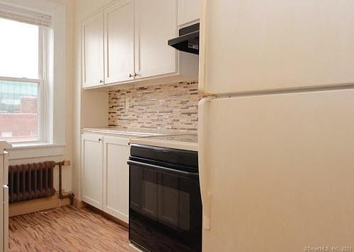 Location, location , location... Smack in the middle of Downtown Stamford. 4th floor corner unit. Bright and sunny, many updates. Including Wood Burning Fireplace. Great opportunity , great value. Walk to Restaurants, Bars, Theatre, and Train Station. Covered Public Parking Available in lot across the street behind the stores. Approximately $100 a month. Heat and hot water included. Tenant pays $100 move in/out fee.