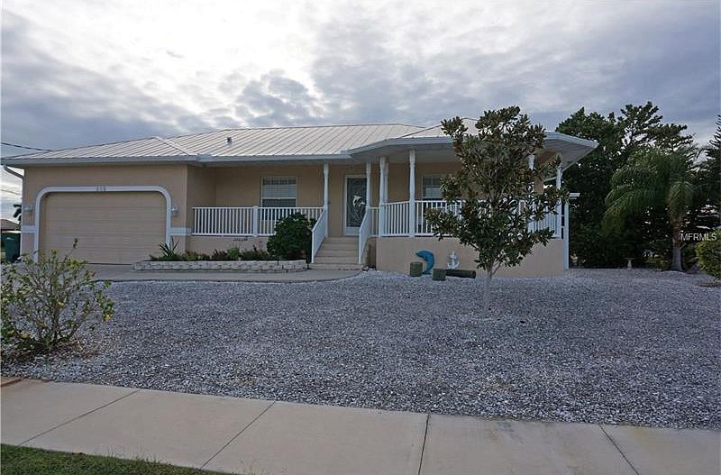 Impressive 2 Bedroom PLUS Den, 2 Bathroom home with attached 2 Car Garage located only 7 lots from the Harbor. DEEP SAILBOAT WATERFRONT. FABULOUS INTERSECTING CANAL VIEWS as well as HARBOR VIEWS from your dock. Large screened lanai with inground pool, balcony and expansive deck. Open modern Kitchen with wood cabinets, granite counters, stainless appliances. Per owner: Pool cage screening was replaced Aug 2017. County water and sewer. **FURNITURE IS NEGOTIABLE** Other features include carpet, marble and tile flooring, TWO master suites with access to lanai area, wood burning fireplace in Great Room, metal roof, manabloc plumbing, vaulted ceiling, 2 beautiful glass bowl sinks in main master bedroom, front porch to enjoy your morning coffee. Minutes from Port Charlotte Beach Complex, waterfront parks, fishing piers, shopping, dining, medical care, entertainment. This is what the Florida lifestyle is all about!