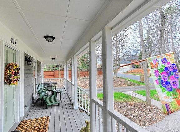 A rocking chair front porch gives this traditional home great curb appeal! The interior shines with beautiful hardwood floors, 9 foot ceilings on the main level, heavy crown & chair rail moldings, custom built-ins and updated kitchen! Spacious formal living room is open to the inviting family room for easy entertaining. The kitchen updated in 2013 boasts gleaming granite countertops, tumbled stone backsplash and Whirlpool stainless steel appliances. Huge bonus room over the garage offers tons of attic storage and makes a great rec room, media room or playroom. You'll love the very private deck for outdoor entertaining and the park-like back yard! This well maintained home has new 20 year exterior cedar siding stain in 2013, new heat pumps in 2011 & 2013 and new architectural roof, gutters & downspouts in 2014. Minutes to historic downtown Matthews, shopping, dining, I-485 access and top rated schools!