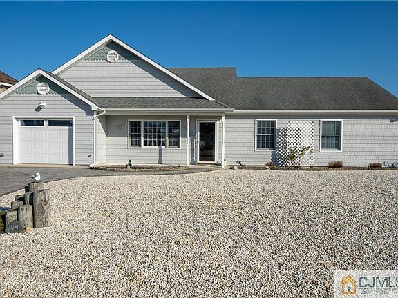 Whether you are looking for a summer home, or for an all year escape, this immaculate ranch home with amazing bay and beach views is the one for you! Built from the ground up in 2003, this home includes 3 bedrooms, 2 bathrooms and over 1800 square feet of pure relaxation. Short distance from Barnegat's Bay beach. Bedrooms and baths have been painted in neutral tones, to complement the serene ambiance of the home's surroundings. This lovely chateau backs up to a deep wide open lagoon where you can swim, boat, fish or crab right from your own backyard. The dining room has three separate sliding doors that provide easy access to the back porch where you can enjoy the sunset and a pergola-covered composite deck with a utility sink and gas line for your grill. This home also has a 55 foot, recently stained dock, with fish cleaning station hook up. Another great added bonus is the storage above, in the walk-up attic that spans the width of the house.