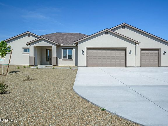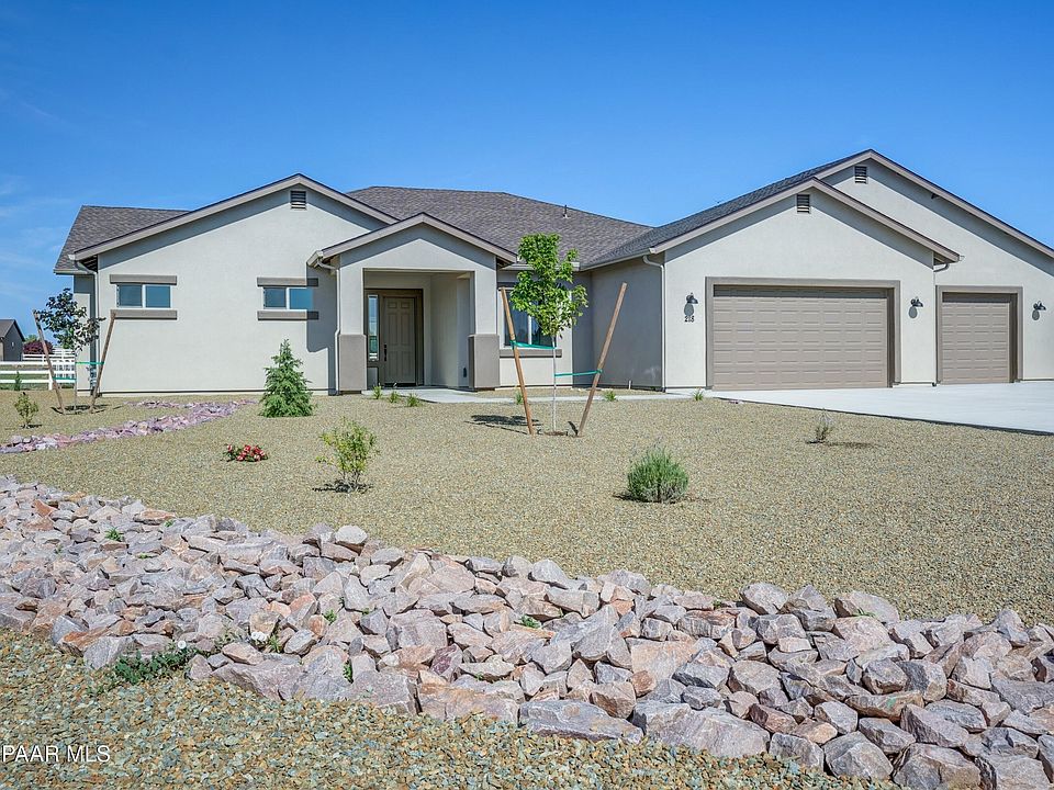 Welcome to this stunning new build in the sought-after Mollie Rae subdivision, situated on a spacious 1-acre lot with breathtaking views of Granite Mountain.This 3-bedroom, 2.5 bath home offers 2,295 sq ft of beautifully designed living space.The open floor plan features tile floors in the main living and walkway areas, a cozy fireplace, and a modern island kitchen with stainless steel appliances and granite countertops.The oversized 3 car garage comes complete with epoxy floors and built-in cabinets for plenty of storage. Outside, you'll find a spacious back patio, and a beautiful front and back landscape. There is an RV pad on this spacious 1 acre lot. The community is lined with charming white vinyl fencing, adding to the tranquil setting. This home is complete and ready for you to add your personal touch! Come make it yours today!