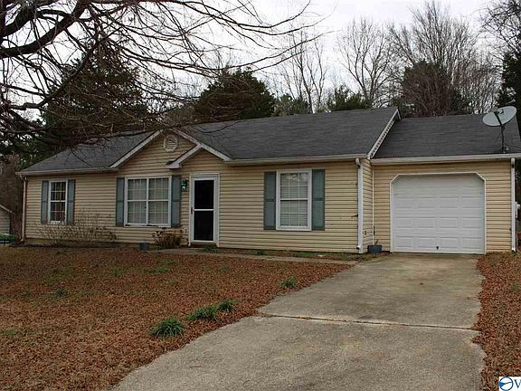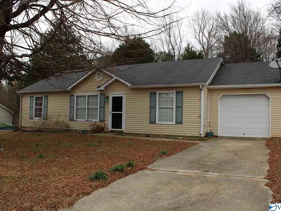 Great starter home or investment opportunity! Convenient location with an easy drive to both Huntsville and Madison. 3 bedrooms, 2 baths, attached garage, fully fenced back yard and mature trees on half acre lot. Split floor plan, private bath in master suite.