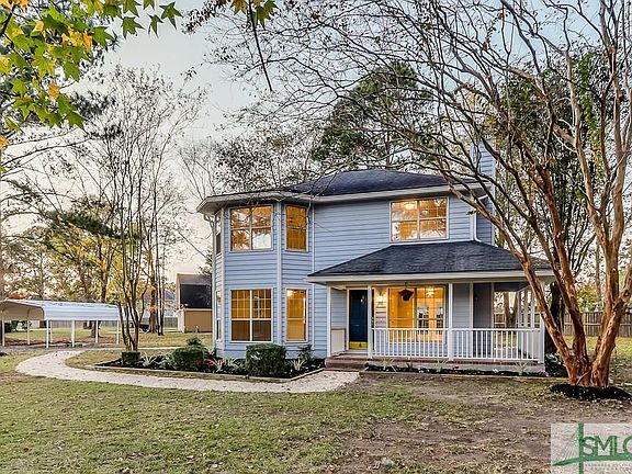 A rare find! A Country Colonial on over an acre near the Little Ogeechee River. Minutes from 95 and Veteran's pkwy, and between Fort Stewart and Hunter AAF. This home was recently renovated with all hardwood floors up and down, all new paint, new kitchen cabinets, wood countertops and new stainless steel appliances, including fridge. All new light fixtures. All 3 bathrooms have new vanities, and the upstairs guest and master bathrooms have custom tile showers. All bedrooms are upstairs, including the master en-suite. Downstairs features Living room with wood-burning fireplace, breakfast area that overlooks the back porch, separate laundry room and a flex room that could double as a dining space or office. Outside of the home you'll find a wrap-around country porch, an oversized, covered back patio, a 2-car carport and storage shed. HVAC is only a couple years old, and this home needs nothing! Move-in ready! Come check out this unique home in its awesome quiet country setting.