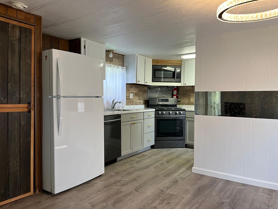 Land not included with home. Newly remodeled interior of home has custom remodeled bathrooms with accent walls in both showers, new showers, hardware and tub, new subfloors in both bathrooms, New pex plumbing with insulation underneath house, new water heater, New flooring, new appliances, new paint, most windows are new. Nice back porch with a fire pit. Lawn is managed by property manager and lot rent is 375/mo paid by home owner. Located in a quiet neighborhood in town. Owner pays lot rent and internet. Lawn is managed by property manager watering and grass mowed weekly. A mailbox is provided by property. All utilities must be put in new owners name and is responsible for gas bill and city bill. No pets are allowed to live on premises unless negotiations have been made with land owner. Only two vehicles allowed to be parked on property by tenants and vehicles must be well maintained no junkyard vehicles or trailers. No campers or trailers are to be stored on premises. Must have regular income and steady job or proof of income. Reference and renter history is advised for consideration.