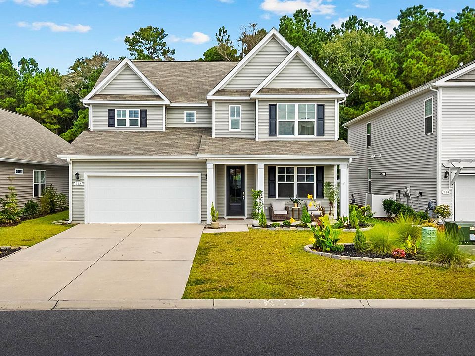 LAZY RIVER COMMUNITY. PRIVATE WOODED LOT. VAULTED CEILINGS. Welcome to 218 Calhoun Falls Drive, an upgraded Willow Oak model tucked away on a private wooded lot in the sought-after The Parks of Carolina Forest. This two-story home features a bright, open-concept design with vaulted ceilings and wide plank laminate flooring throughout the main living areas. The gourmet kitchen is a showstopper, offering 36" white cabinetry, upgraded level 3 quartz countertops with gorgeous veining, stainless Whirlpool appliances including a gas range, a stylish backsplash, and a spacious island that opens to the dining and living rooms, perfect for entertaining. The owner’s suite is located on the main floor and has been beautifully updated with a brand-new bathroom remodel, featuring a custom shower, dual vanity, modern fixtures, and luxury vinyl plank flooring. A transom window fills the space with natural light, and the oversized walk-in closet has also been upgraded with new flooring. A second bedroom and full bath on the first floor provide ideal guest accommodations or an office space. Upstairs offers an oversized loft that can serve as a full second living area, along with three additional bedrooms and two full baths. One of the bedrooms includes a private en suite. Other upgrades include an extended patio, detailed landscaping and brickwork, enhanced garage storage, and new lighting and faucet fixtures throughout the home. Outside, the home features a nicely sized yard, perfect for relaxing or entertaining, all with the added privacy of mature trees. Located in a natural gas community, The Parks of Carolina Forest offers resort-style amenities including a lazy river, clubhouse, fitness center, playground, fire pit, all set among scenic walking trails and ponds—just 5 miles from the beach and close to top-rated schools and Hwy 31. Don't forget to drive you golf cart to the grocery store and local restaurants. Luxury, location, and space—this home has it all. **Some photos in this listing have been virtually staged.**