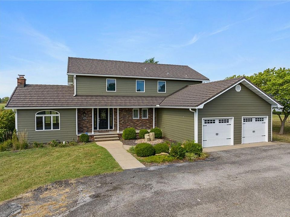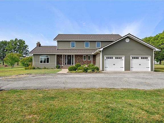 Motivated sellers!! Welcome to this spacious two-story home that offers the perfect blend of comfort, style, and functionality. With 4 bd, 3.5 ba, and a range of exceptional features, this meticulously maintained home invites you to sit and stay. A classic two-story design and a circle drive that provides parking space for friends and family. Situated on a large lot just under one acre, this property offers plenty of room for outdoor activities and landscaping possibilities. Step into a welcoming two story entry with gleaming wood floors. The main level boasts two living areas, each equipped with its own cozy fireplace. These spaces provide versatile options for relaxation and entertainment, ensuring everyone can find their favorite spot to unwind. Whip up your favorite chili recipe in the fully equipped kitchen that has SS appliances, custom wood cabinets, granite countertops, breakfast bar and separate eating area, offering durability and functionality making it a breeze to follow the cooking channel recipes. The open concept kitchen and family rm overlook the large backyard with access to deck ready for enjoying the beautiful Fall days. There is tons of space to invite the gang over to watch the game in the large family rm that has wet bar and built-ins. Convenience meets practicality with a main floor laundry rm. Step out onto the covered deck, where you can enjoy alfresco dining, BBQs, or simply bask in the tranquility of your backyard. The outdoor experience is further enhanced by an above-ground pool, providing a refreshing escape from the hot Kansas summers. Descend into the finished basement offering double staircases. This is the perfect extension of living space, with room for chilling, recreation, media and additional non-conforming 5th bdrm. It's an incredible bonus to an already impressive home, ensuring that every member of the household has their own corner of comfort and leisure. Move in ready for YOU!