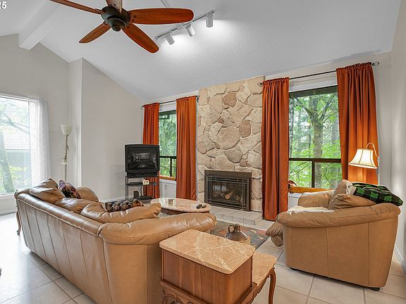 With one of the lowest HOA monthly payments in Mountain Park, this upper level contemporary condo features fresh paint, brand new carpet and LVP! The spacious step-down living room has a vaulted ceiling, tile floor, gas fireplace and tall windows that invite the outdoors in! The kitchen offers hardwood floors, granite counters, a stainless steel dishwasher, gas range with double-ovens, refrigerator and walk-in pantry for additional storage. The dining room has a slider that accesses a deck overlooking a walking path surrounded by forest. The primary bedroom has a deck of its own as well as a walk-in closet. The continental bath features a laundry space (washer and dryer are included), a sink on the hall side as well as double-sinks on the primary bedroom side. This condo offers a tuck-under attached single-car garage plus off-street parking. The entry has a covered access and a storage closet. Landscaping and exterior maintenance is included with the monthly dues. This condo is less than a mile to Mountain Park Clubhouse, which offers a variety of activites and amenities, including a fitness center, tennis and basketball courts, a pool, meeting and party spaces and other recreational facilities. If you want to be on top of the world and close to PCC, I-5, Lake Oswego and Westside amenities all for an affordable price, don’t miss this opportunity to dwell in one of Lake Oswego’s best communities!