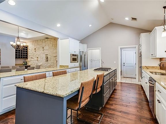 TURN KEY PROPERTY AVAILABLE FOR IMMEDIATE MOVE IN. Imagine coming home every day to your own private oasis in a tucked away gated community. Perfectly situated on 2 acres with private views and large native trees, the front and back yards boast several outdoor living spaces coordinated for solitude, relaxation and pure "pinch yourself" moments. Comprising both lush lawns for play and entertaining, and leafy wooded areas for privacy and exploring, this is the perfect location to relax and enjoy the Hill Country lifestyle. This home is an entertainer s dream with an open concept kitchen, entertainment bar with wine fridge, outdoor kitchen, both indoor and outdoor stone fireplaces, covered patio, an extended pergola that overlooks the sparkling pool, and the firepit for roasting smores. The generously sized primary suite has a private entry off the family room, leading into the bedroom and sitting area, through to the sizeable walk-in closet and spa-like bathroom with a dual vanity, walk in shower, standalone garden tub and double glass doors that lead back to the private courtyard with an outdoor shower and sitting area for moments of solitude. Take advantage of 3 additional bedrooms, 3.5 bathrooms, and a flex space that can function as an office, studio or additional living area. Well maintained and thoughtful details in this single-story home will allow you the perfect place to enjoy nature on your terms and enjoy serene, resort style living. Minutes from fine dining and entertainment. Exemplary Dripping Springs ISD. 2022-07-07