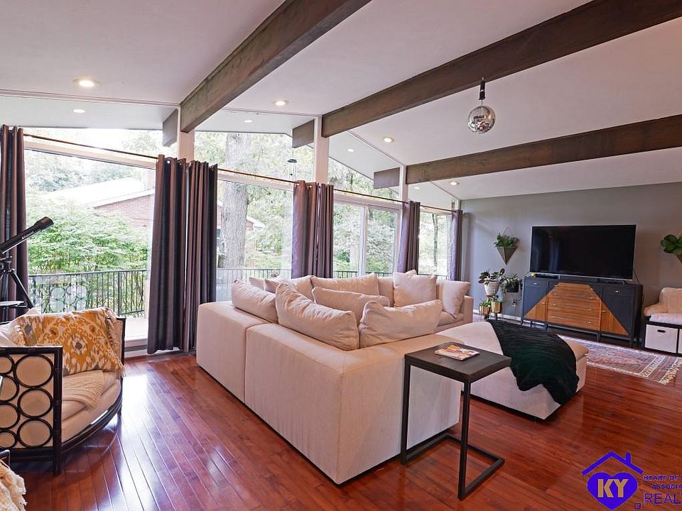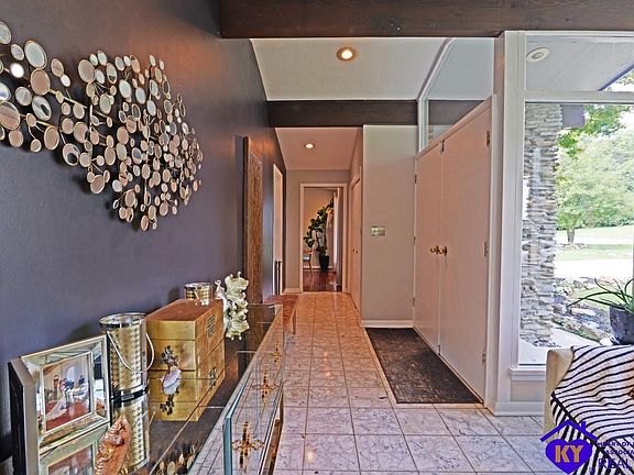 Stunning Mid-Century Modern Ranch conveniently located in the park like setting of Indian Hills. Home is filled with floor to ceiling windows, vaulted beamed ceilings and exposed brick. Large updated kitchen has a huge island, granite countertops, 5 burner gas stove, double ovens and original indoor grill opens up to large patio. Living room has vaulted ceilings with beams, exposed brick, a natural gas fire place with large windows that leads to a private balcony. The walk-out basement has a pool table, wet bar, infrared sauna, gorgeous herringbone brick floors and 700 sqft of storage. 4th bedroom basement no egress. Pool table/Infared Sauna remains. Must see to appreciate.