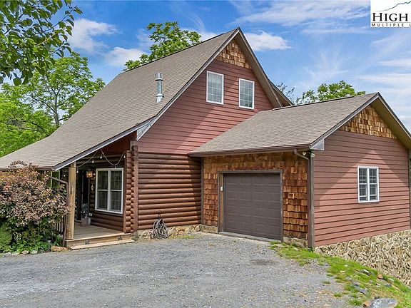 Charming Mountain Retreat with Pond Frontage in Canawhay - Nestled on a picturesque 2-acre lot that borders a tranquil pond in the desirable Canawhay community, this quality-crafted custom home blends rustic charm with modern comfort. The thoughtfully designed exterior showcases a beautiful mix of logs, board and batten, durable HardiePlank, and cedar shakes, all wrapped in an expansive covered deck that spans the front and back—with an open-air section perfect for relaxing and enjoying peaceful pond views. Inside, the main level welcomes you with a spacious open-concept layout that connects the living room and eat-in kitchen. A cozy stone fireplace anchors the living area, creating a warm and inviting space for gathering on cool mountain evenings. The kitchen features stainless steel appliances and distinctive concrete countertops that add a unique touch of style. Also on the main level is a convenient half bath with laundry; a guest bedroom with deck access, a private en suite bath with a tiled shower; and an attached one-car garage. Upstairs, a cozy loft overlooks the living area and leads to a spacious primary suite. The en suite master bath offers a luxurious retreat with a whirlpool tub, walk-in tile shower, and matching concrete countertop. The finished lower level provides excellent flexibility, featuring a private living space with a separate entrance, efficiency kitchen, living area, bedroom, and full bath with a tile shower—ideal for guests, in-laws, or as a separate rental unit. Whether you're looking for a full-time residence, a mountain getaway, or a turn-key rental investment with a proven history, this home offers it all. It comes fully furnished—including the hot tub—and is located just a short drive from New River State Park, providing easy access to river adventures, hiking, and the best of High Country living. Seller offering 10K credit to refinish or replace wood flooring.