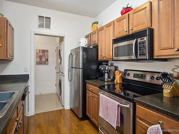 Beautiful 1st floor unit overlooks open park-like area. Kitchen, dinette, & living area with genuine hardwood flooring. Kitchen features stainless appliances, maple cabinets, & solid surface countertops. Spacious master bedroom with walk-in closet and attached bath. In- unit stackable washer and dryer. 1 car detached garage# 17. Impressive clubhouse features party room,indoor pool and fitness Rm. This is like having a country club/ resort just steps from your door!Walking distance to Metra Park & Ride. Note the low Oswego taxes. Live here cheaper than rent & get the tax write-off too!