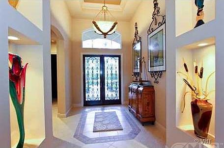 Professionally decorated home located on the 10th Fairway of the South Course. This stunning 3 bedroom, plus den, 4.5 bathroom home was built by award winning builder Malcolm Jones. This extended Alexander model has an open floor plan & is great for entertaining. Relax by the beautiful heated pool & spa with gorgeous tropical landscaping for privacy & southeast exposure. The gourmet kitchen has granite counters with tumbled marble backsplash, custom cabinets, gas stovetop & double oven. Trey ceilings with crown molding in the foyer, great room, eat-in kitchen, dining room, & master bedroom. The den has a beautiful wood built-in with desk area & plenty of cabinets for storage. The master bedroom has his & her bathrooms with beautiful marble counters & custom cabinets.