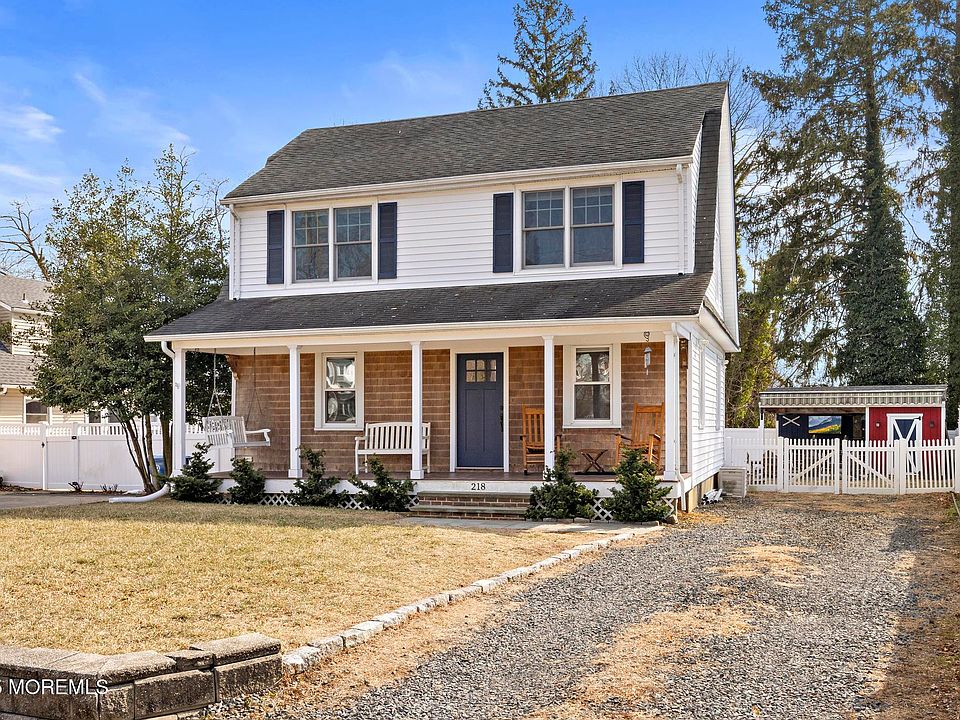 This welcoming Dutch colonial is centrally located in Middletown's Fairview neighborhood & it was completely renovated in 2018. Quartz countertops, stainless appliances, & a functional island complete a beautiful kitchen. Full baths on each level include elevated finishes & modern lighting. The large unfinished basement provides additional space for a home gym, family room, or play space for the kids. Spacious fenced-in rear yard includes a natural wood deck, blue stone patios, & a she/he shed for entertaining friends & family. Hardwood floors throughout, updated mechanicals, & a newer roof. Spend your seasons relaxing on the timeless front porch at 218 Cooper Rd. Easy access to NYC Ferry, NJ Transit, local beaches, & downtown Red Bank.