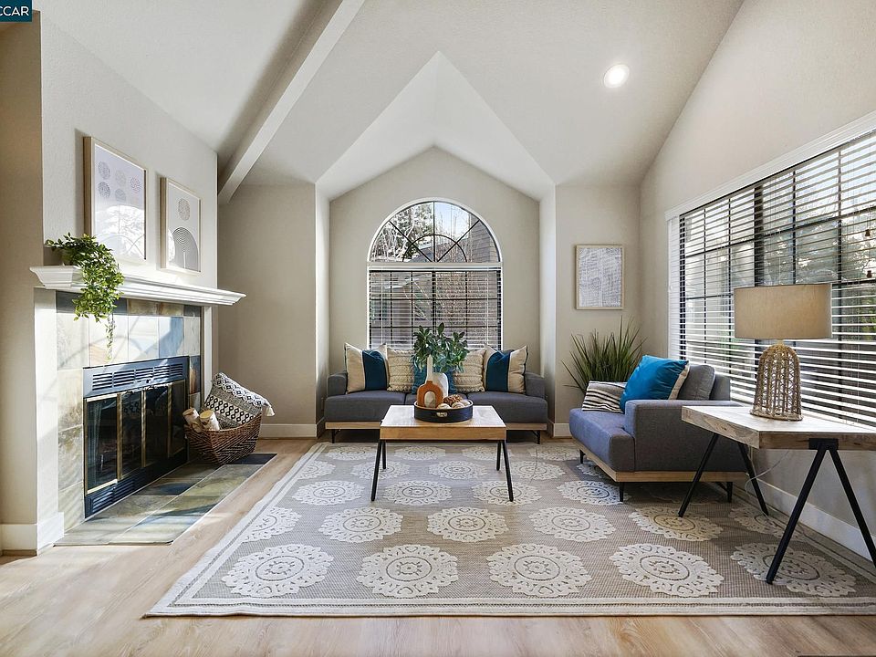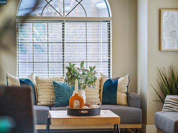 Enjoy resort-style living in a coveted Copper Ridge gated community! With immediate proximity to Bishop Ranch Center offering a multitude of shopping and dining options, and easy commuter access to Hwy. 680, this upscale 1-Bedroom end-unit will appeal to the most discerning consumer. Soaring vaulted ceilings, abundance of natural light, freshly painted interior, newly installed LVP flooring throughout, expansive master suite with two walk-in closets, and inside laundry are just a few features of this delightful turn-key home. A small private patio at the entry with a storage closet and a 1-car garage, uncommon for condo developments, provide additional storage opportunities and enhance the appeal. A club house, two swimming pools, tennis courts, fitness gym, and endless trails provide unlimited recreation possibilities. Make a viewing appointment today and experience San Ramon at its finest!