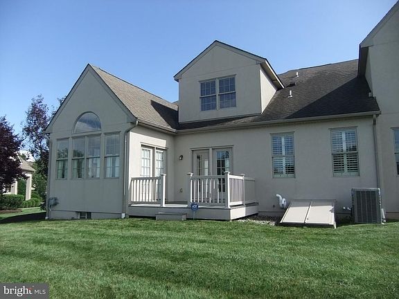 Welcome to Indian Valley Greens, a luxury 55+ Community located in Franconia Township across from Indian Valley Country Club. This stone front end unit Carriage home features a covered front porch, 2 car garage surrounded by stunning landscaping. The moment you enter this 3,037 square foot home you are greeted by the 2 story foyer and the beautiful hardwood flooring throughout the first level with it's open space design and 9 foot ceilings. From the living room with it's ornamental fireplace, to the formal dining room with bay window to the family room adjacent to the large kitchen and finally the bright Sunroom which overlooks the open space to the rear, living space will never be a problem for entertaining guests.(French doors between DR and FR as well as between FR and Sunroom). Main level also contains the laundry room with utility tub and cabinetry. The 12 X 29 kitchen has an unbelievable amount of 42" white cabinetry, a 20' long Corian counter top and many more extra features. The kitchen leads to the deck which overlooks the meticulously kept grounds. The master bedroom suite has a tray ceiling with ceiling fan, two walk-in closets, stall shower, double vanity and toilet closet. The additional bedroom on the main level gives the flexibility of a fourth bedroom/office/sitting room/study. The upper level makes for a wonderful getaway for guests with an over sized loft with an 8 X 11 walk in closet with heat and AC, two additional bedrooms and a full bath. This home has more closet space/storage area then you will ever need, especially with the gigantic unfinished basement with a Bilco door exit. A great community, centrally located, close to parks and shopping with easy access to major point of interest including the shore and the mountains.