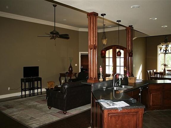 Listing agent: Eric Burch, Call 870-919-4968 for information. Wonderful brick, stone, and stucco, traditional home located in a cul de sac, with landscaping and covered front porch. An open floor plan and custom amenities makes this home comfortable and beautiful. From the entrance, the family room is open to a formal dining room and kitchen. The family room features hardwood floors, fireplace,crown molding, ceiling fan, and recessed lighting. Elegant fixtures, 12 ft. ceilings and a window with great architecture adds drama to the formal dining room. The kitchen includes rich wood cabinetry and columns, a breakfast bar that backs up to the family room, pendant lighting, granite counter tops, and stainless appliances. The master suite is a spa retreat with tile floors, jet tub, large window for natural light, huge walk in closet, large vanity with granite top, and walk-in tiled shower. Bedrooms are spacious and the guest bath features a dual, granite topped vanity and separate bath/shower combination. Other amenities of this great home include a bonus room, dry bar, carbon monoxide detector, hot tub, two car garage and privacy fence.