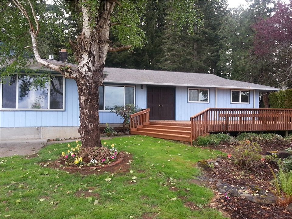Truly stunning view of Mt Rainier, the Chehalis River valley and your private pasture land from the huge deck on this house. You can reserve the very nice 28x60 2 Horse stall & 2 RV Bay with a loft barn for the animals because all your things will fit inside the large 3 bay garage. The kitchen has been remodeled and several rooms have new carpet. The propane and wood stoves will keep you toasty in the winter with low electric bills. Just an idea: This property should be easily dividable.