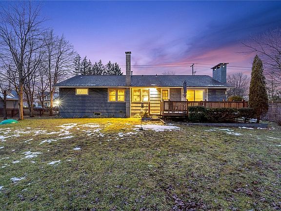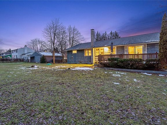 Charming 3 Bed, 2 Bath Ranch on a Double Lot in Desirable East Syracuse! This lovely 1544 sqft home nestled on a spacious corner lot, offers the perfect blend of comfort and convenience. Boasting a 900 sqft detached garage, this property presents an ideal opportunity for those seeking a cozy & spacious residence. Step inside to discover a well-appointed interior featuring three inviting bedrooms, two full baths, and a full basement offering ample storage or potential for additional living space. The home has been lovingly maintained and includes a newer hot water heater and furnace, ensuring both comfort and peace of mind for the lucky new owners. Outside, the property delights with a new paved driveway, a great yard offering plenty of space for outdoor enjoyment, and a welcoming back porch perfect for relaxing and entertaining. The fantastic double lot provides plenty of room for expansion, gardening, or any outdoor activities you desire. Conveniently located, this home offers easy access to local amenities, parks, and major roadways for effortless commuting. Don't miss out on this wonderful opportunity to make this delightful property your own! ESM School District.
