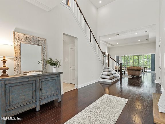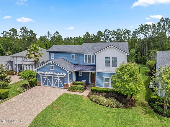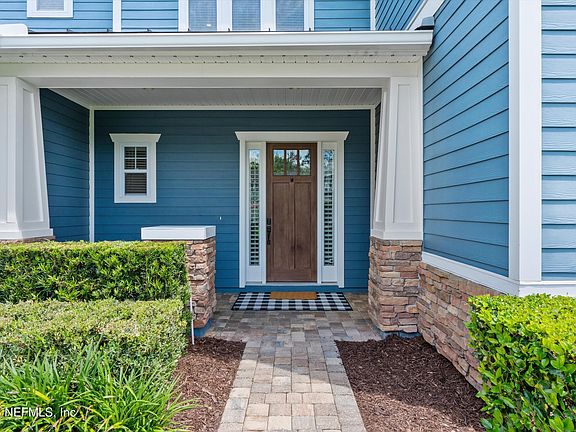 Welcome to this stunning estate nestled on a premium preserve lot in the highly sought-after Julington Lakes of St. Johns County. Every inch of this home exudes sophistication & comfort with an array of luxury upgrades, designed to impress even the most discerning buyer. Step inside to soaring ceilings & expansive open-concept living spaces; enhanced by intricate coffered ceilings & a designer gas fireplace. The gourmet chef's kitchen is a true showpiece - featuring custom cabinetry w/ soft-close drawers, gleaming granite countertops, gas appliances, wine chiller & an oversized hidden walk-in pantry that redefines storage. Designed for effortless indoor-outdoor living, a four-panel pocketed sliding glass door opens to a vast, fully screened lanai, anchored by a striking outdoor fireplace - a captivating focal point. The home is thoughtfully plumbed for a future outdoor kitchen & pool, allowing endless possibilities to tailor your private outdoor sanctuary. Retreat to the owner's suite on the main level, where a spa-like bath awaits featuring a large soaking tub & generous walk-in shower, with designer finishes. Main level also includes a second bedroom (perfect for in-law), a home office, and laundry room. Upstairs includes 3rd, 4th & a spacious 5th bedroom or bonus room/media/game room. Additional highlights include Gemstone architectural lighting with customizable color settings for year-round ambiance, a 3-car tandem garage, full irrigation system, water softener, & so much more. Enjoy resort-style amenities including a luxurious clubhouse, sparkling walk-in pool, fitness center, tennis & basketball courts, kayaking on the community lake & scenic trails. Best of all, there are NO CDD fees. & the home is zoned for St. Johns County's top-rated "A" schools in Florida's #1 school district. This exceptional property offers a rare combination of elegance, functionality, and location!
